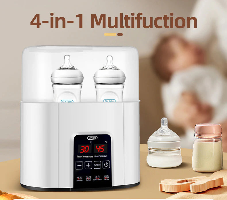 Effortlessly prepare your baby's milk with this 4-in-1 multi-function warmer, designed to safely and quickly warm two bottles at once. Featuring a smart touch screen and anti-dry protection, it’s the perfect blend of care and convenience for every parent.