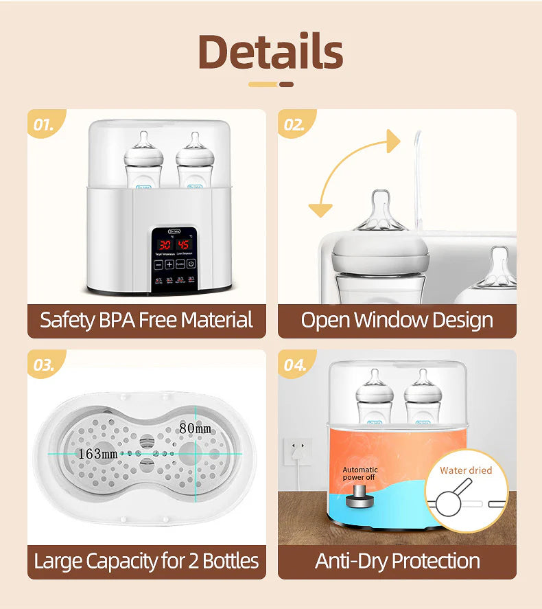 Crafted from Safety BPA-Free Material, its Open Window Design ensures easy access, while the Large Capacity fits 2 Bottles. Enjoy peace of mind with Anti-Dry Protection, making every feeding experience safe, simple, and convenient for you and your little one.